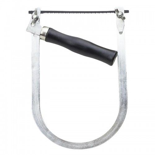Лобзик предназначен для выпиливания деревянных элементов из плоских заготовок. Дуга фиксирует режущее полотно. Пластиковая рукоятка помогает держать инструмент. Ход легкого лобзика четко контролируется. Металл не гнется и не ломается.