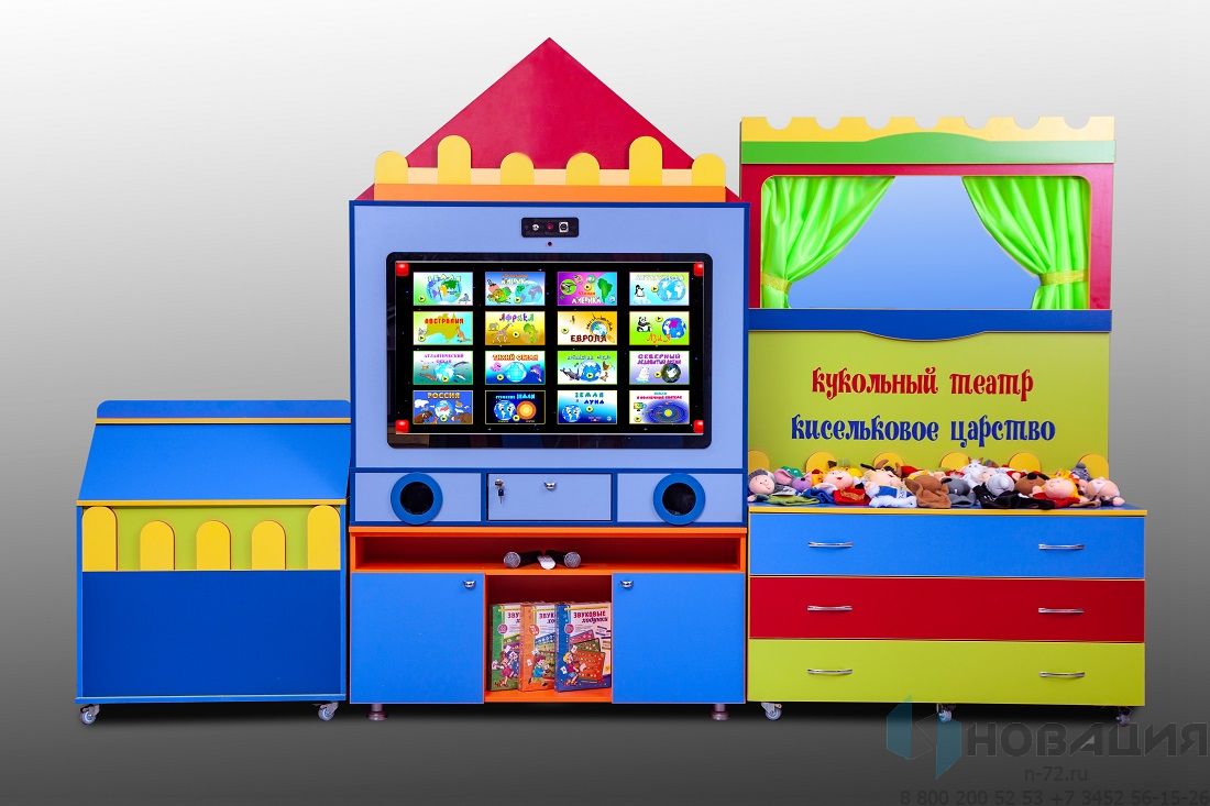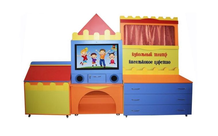 - Модуль «Кукольный театр» — стилизованная ширма из ЛДСП, набор из 25-ти перчаточных кукол.