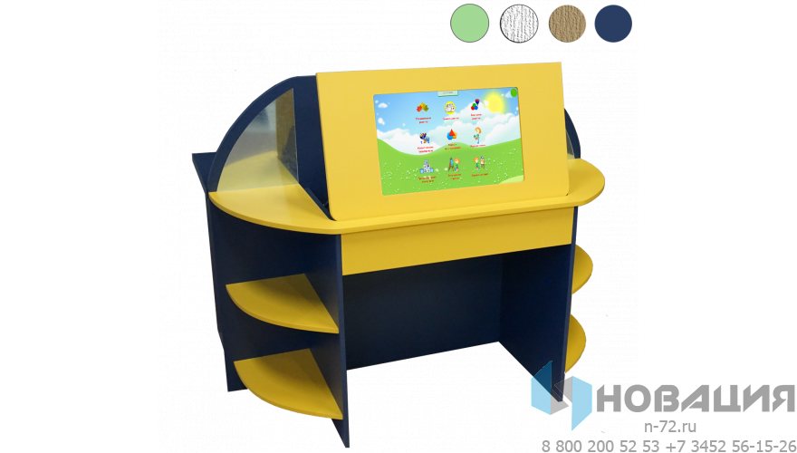 - Интерактивная сенсорная панель. Антивандальный экран, угол наклона и высота меняется.