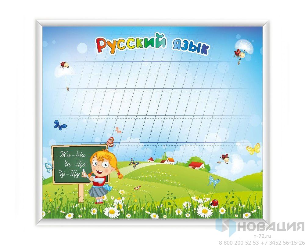 В комплект входит 15 гибких магнитов для крепления различных плакатов и информационных листов. Центр доски расчерчен в косую линию для удобства учителя и обучения детей верному написанию букв.