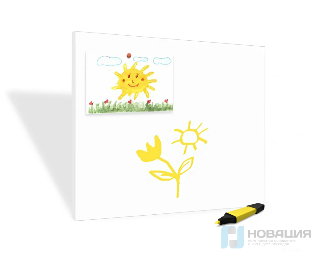 Панель размещается в ДОУ, школе, ином муниципальном учреждении. Это решение "3 в 1", замена обычному стенду, магнитной доске, маркерной панели. На гладкой поверхности можно рисовать, закреплять объявления и фотографии, отрабатывать навыки письма.