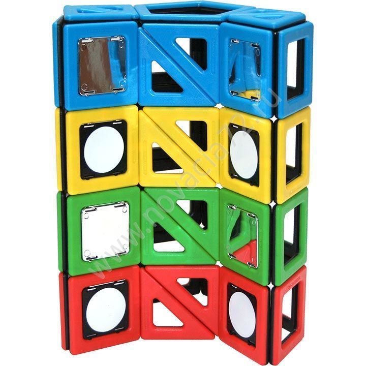 Занимаясь с данным набором, дети научатся строить различные конструкции и фигуры, познакомятся с основами математики, геометрии и дизайна. Зеркальные панели позволяют детям освоить знания о свойствах светового луча и отражения, а пластиковые панели позволяют на них писать и выкладывать из деталей различные задания, осваивать навыки счета, письма и формировать задания на классификации.
