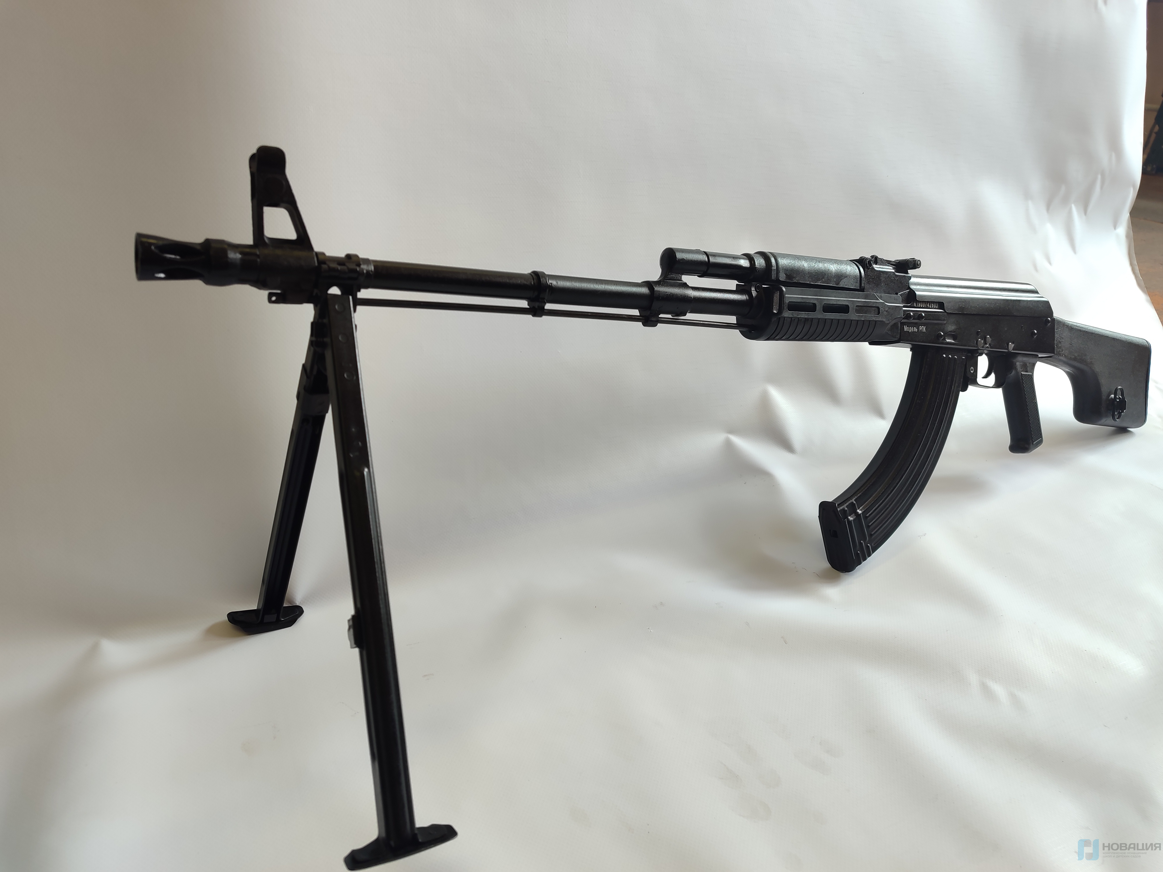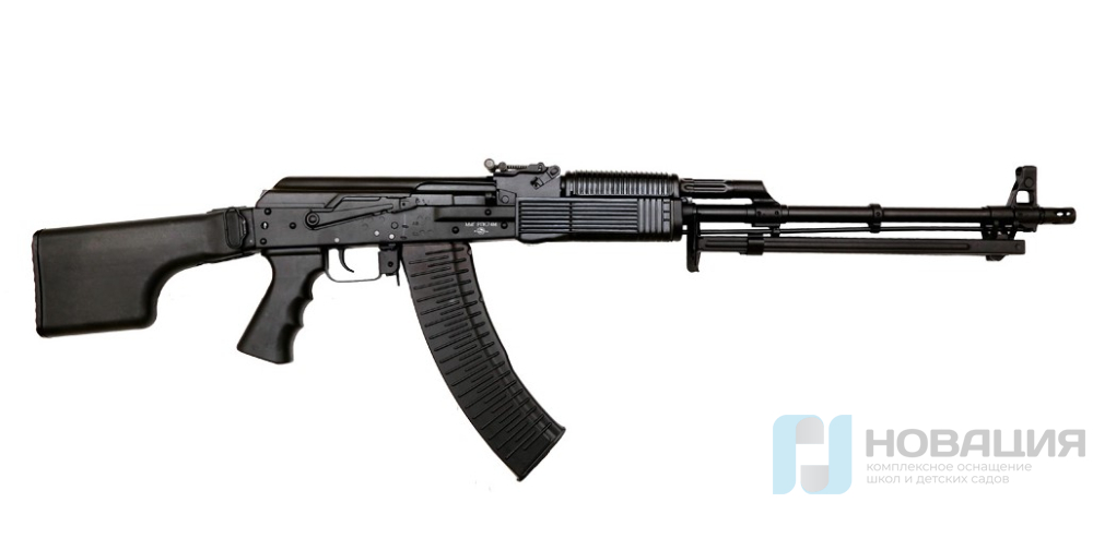 Макет массогабаритный пулемета Калашникова (РПК 74) предназначен для использования на уроках основ безопасности жизнедеятельности (ОБЖ). Представляет собой точную копию боевого пулемета РПК 74, но лишен возможности стрельбы и других функций боевого оружия.