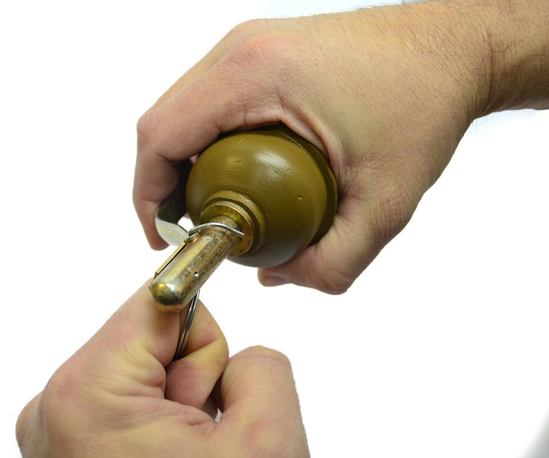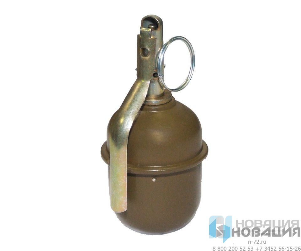 Оборонительная граната оснащена резьбовым вкладышем, кольцом чеки.