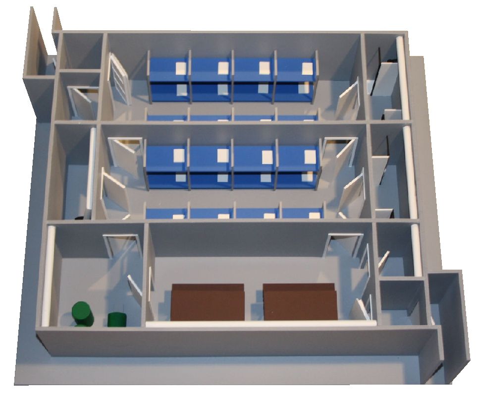 Неразборный макет для кабинета ОБЖ и НВП демонстрирует план встроенного противорадиационного укрытия.