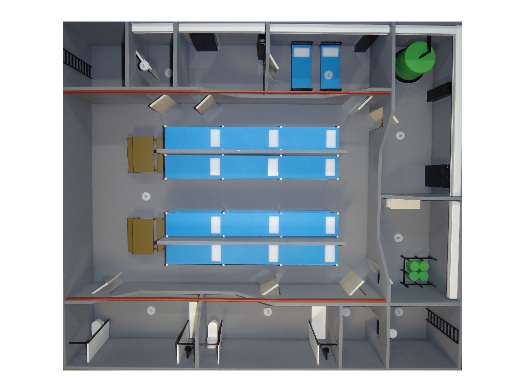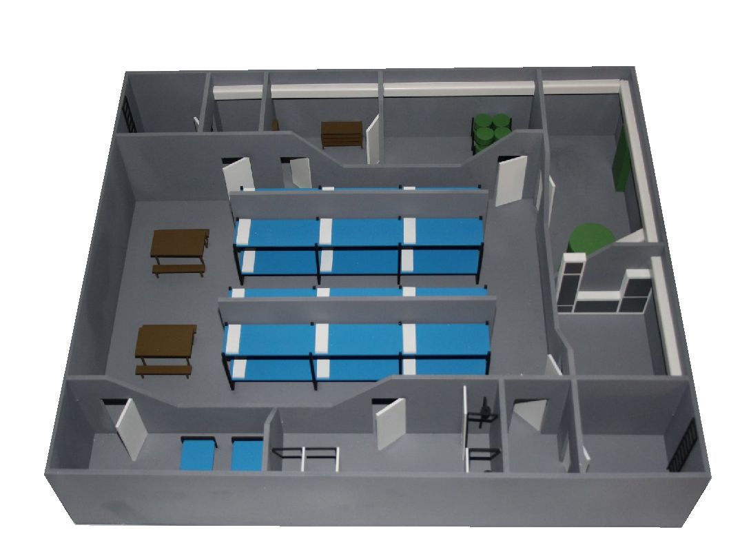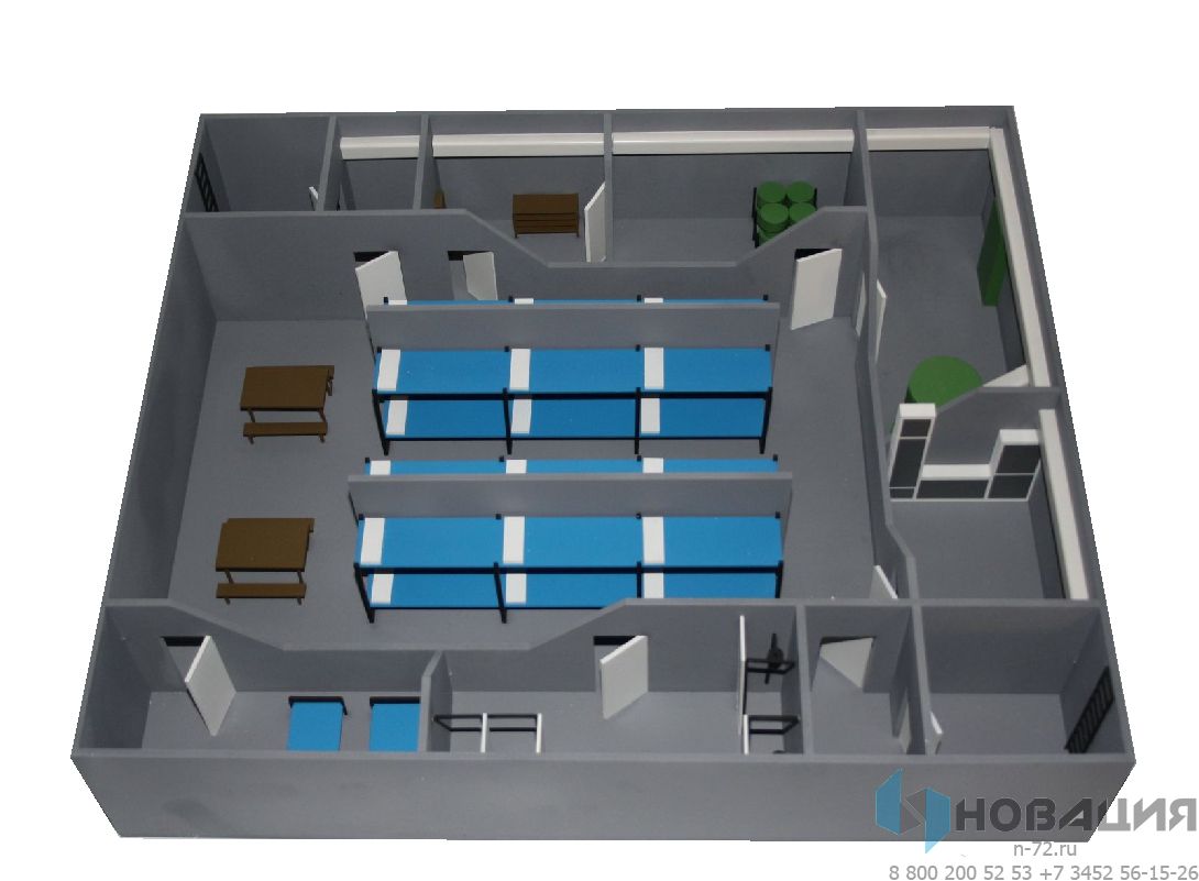 Неразборный макет для кабинета ОБЖ и НВП демонстрирует состав встроенного убежища в разрезе.