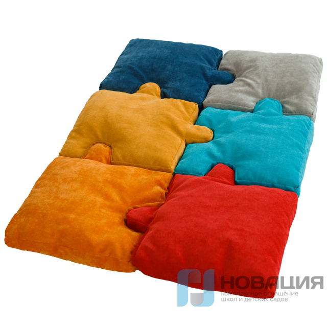 Матрас состоит из 6-ти отдельных разноцветных элементов, которые выполнены в форме деталей пазла. Части легко соединяются и разъединяются. Чехлы несъемные. Может использоваться как место для сидения или в качестве игрового элемента.