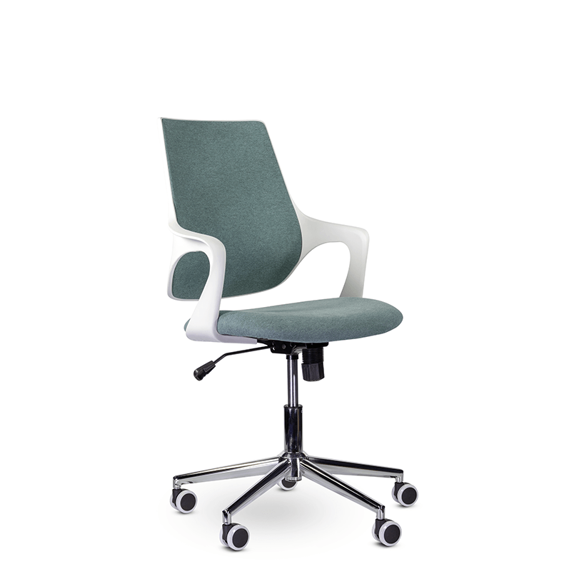 8) Кресло операторское (4 шт.): белый пластик, обивка бирюзовая, 700х710х900/1050 мм, на пятилучье с колесами.