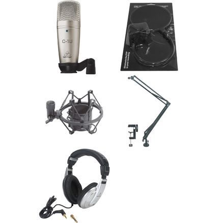 - профессиональный студийный микрофон с держателем, стойка, поп-фильтр, наушники,