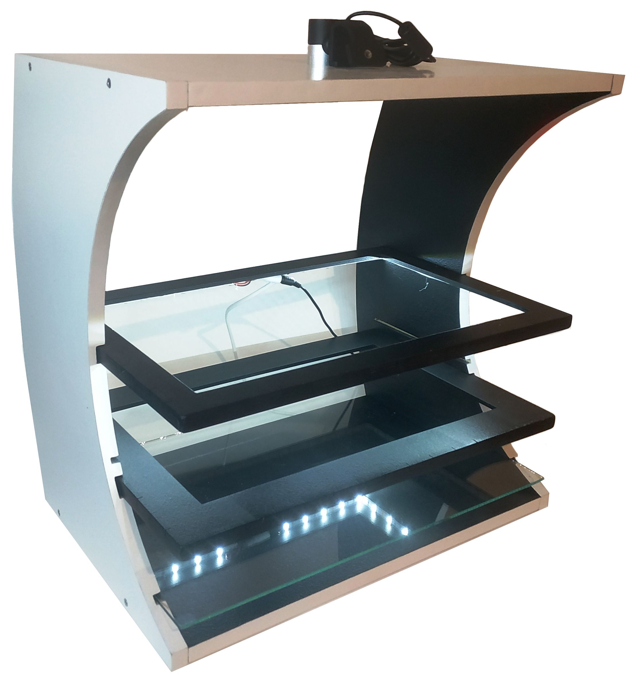 - мультстанок: 490х485х360 мм, с антибликовым покрытием и освещением по периметру,