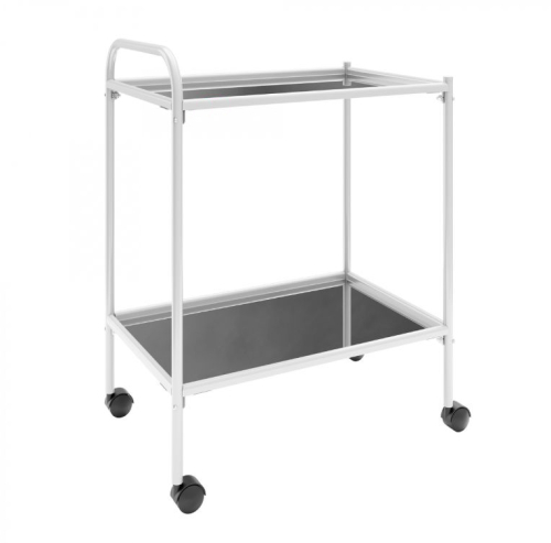 Материал: каркас – тонкостенный стальной профиль, полки – нержавеющая сталь, стекла, колеса - пластик (d 50 мм).