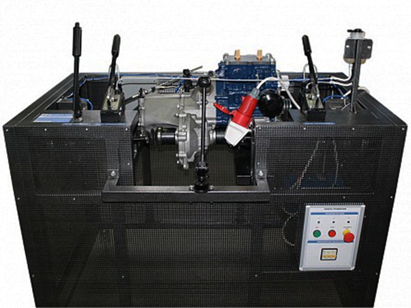 Принцип работы механической коробки передач легкового транспорта наглядно представлен на специальном стенде. Оборудование помогает изучить способы устранения неисправностей, моделирование нагрузки.