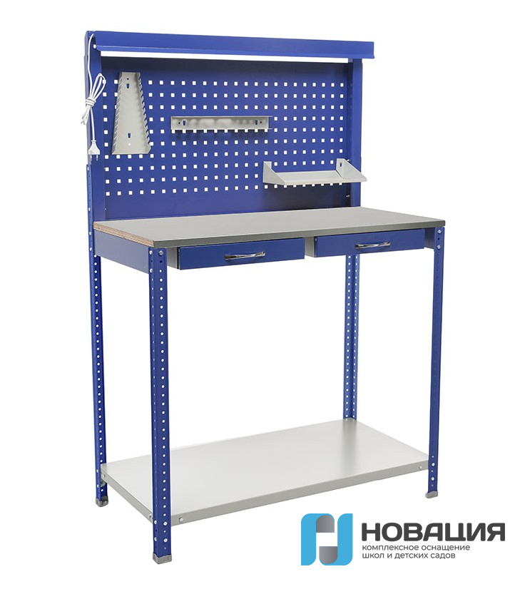 Укомплектован светодиодной лампой мощностью 7 Вт и белым свечением. Благодаря дополнительному источнику света работа с верстаком становится комфортнее.