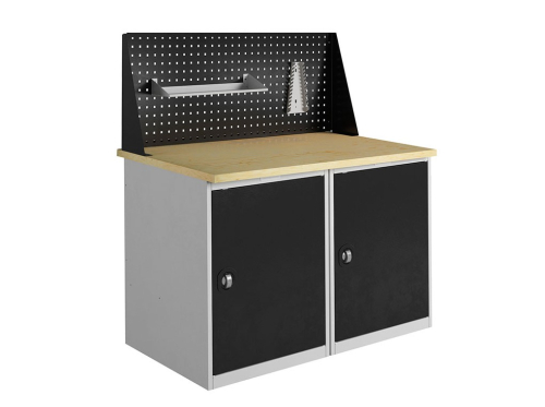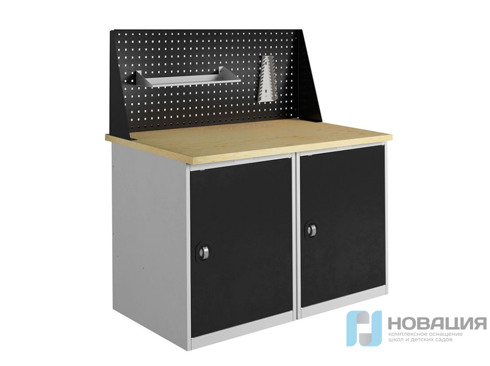 Предназначен для кабинетов технологии и инженерных классов в школе. Столешница изготовлена из фанеры толщиной 30 мм, покрыта лаком. Тумба укомплектована двумя съемными полками, которые можно отрегулировать по высоте.