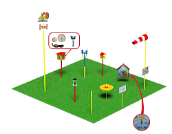 - 2 (с модулем "Визуализатор погоды"). 2-сторонний стенд: 7 рабочих зон со стрелками и бегунками; на циферблатах и шкалах обозначены дни недели, месяцы, фазы луны, степени облачности, направления ветра.