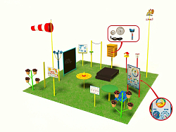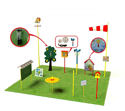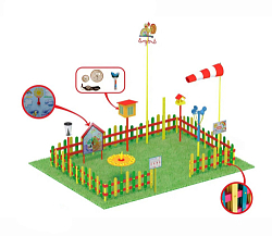 - 1 (с модулем "Погода и времена года" с Экопластиком Petra ®). 2-сторонний стенд в форме домика: 2 тематических поля со стрелками, на циферблатах изображены времена года и состояния погоды.