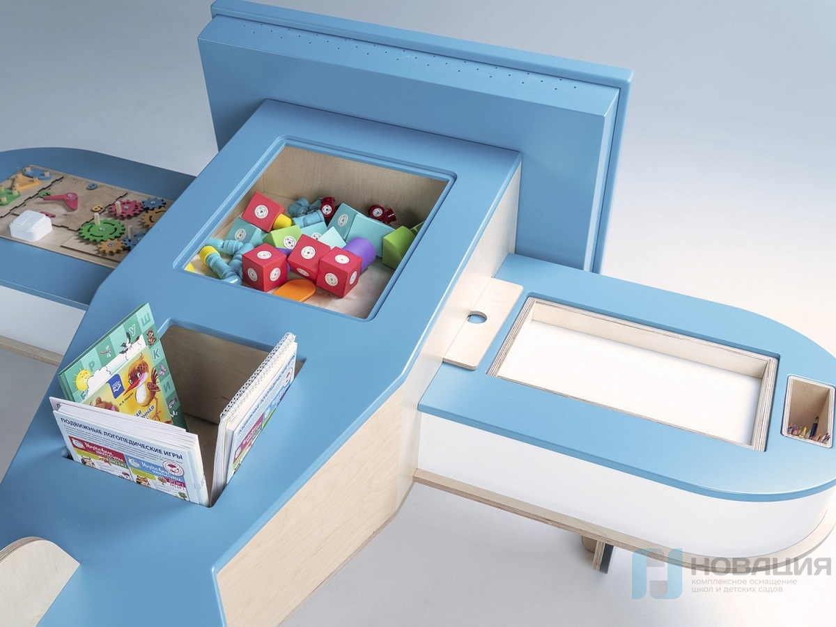 Присутствует функция разделения интерактивного экрана на 2 игровых сектора, что делает возможным задействовать как можно больше детей для групповой работы.