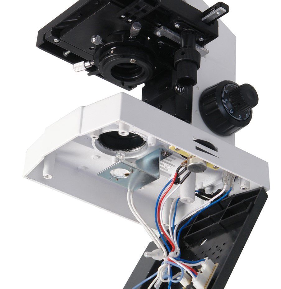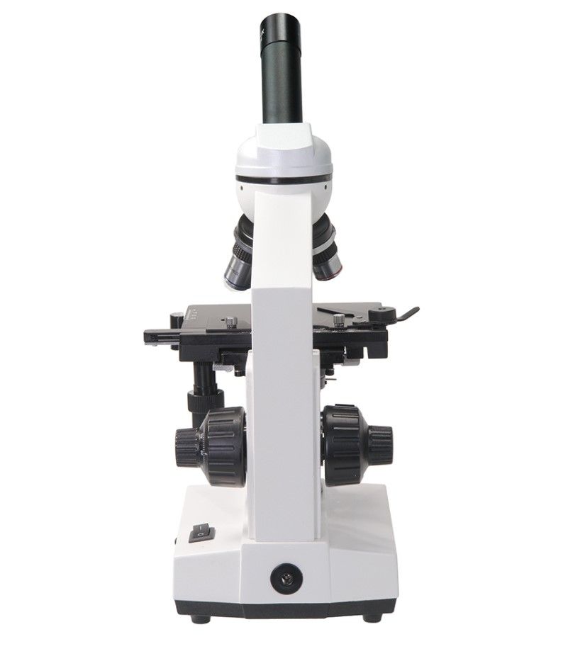 Прибор совместим с камерами. Рассчитан на объективы RMS c парфокальной высотой 33 мм. Длина тубуса 160 мм. Яркость светодиодов регулируется. Столик изменяет высоту в пределах 27 мм. Диапазон перемещения препарата составляет 22х67 мм.