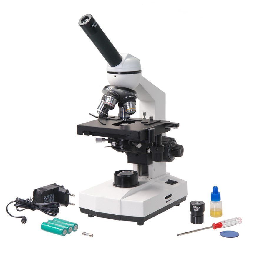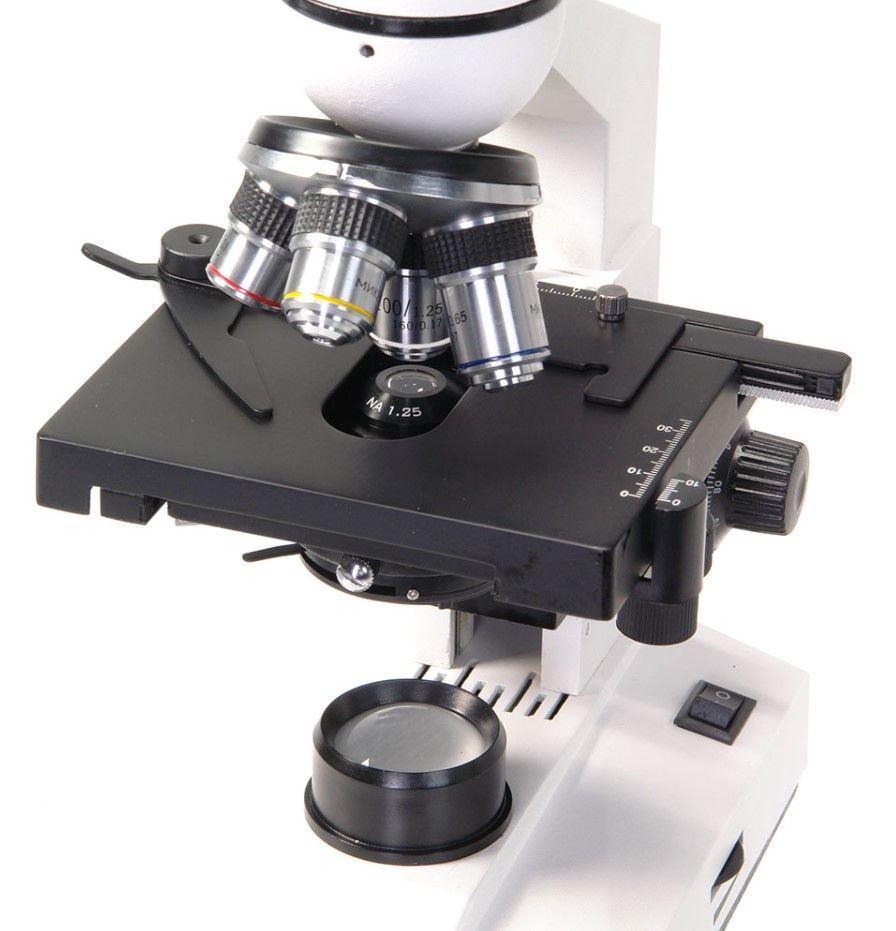- 4 объектива-ахромата: 4х/0.1 160/0.17, 10х/0.25 160/0.17, 40х/0.65 160/0.17, 100х/1.25 (ми) 160/0.17,