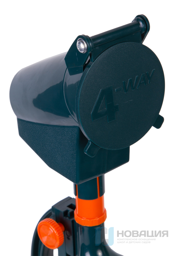 Кратность регулируется поворотом револьверного устройства. Фокусировка настраивается при помощи ручки. Подсветка микроскопа размещается под предметным столиком и работает от батареек (не входят в комплект).