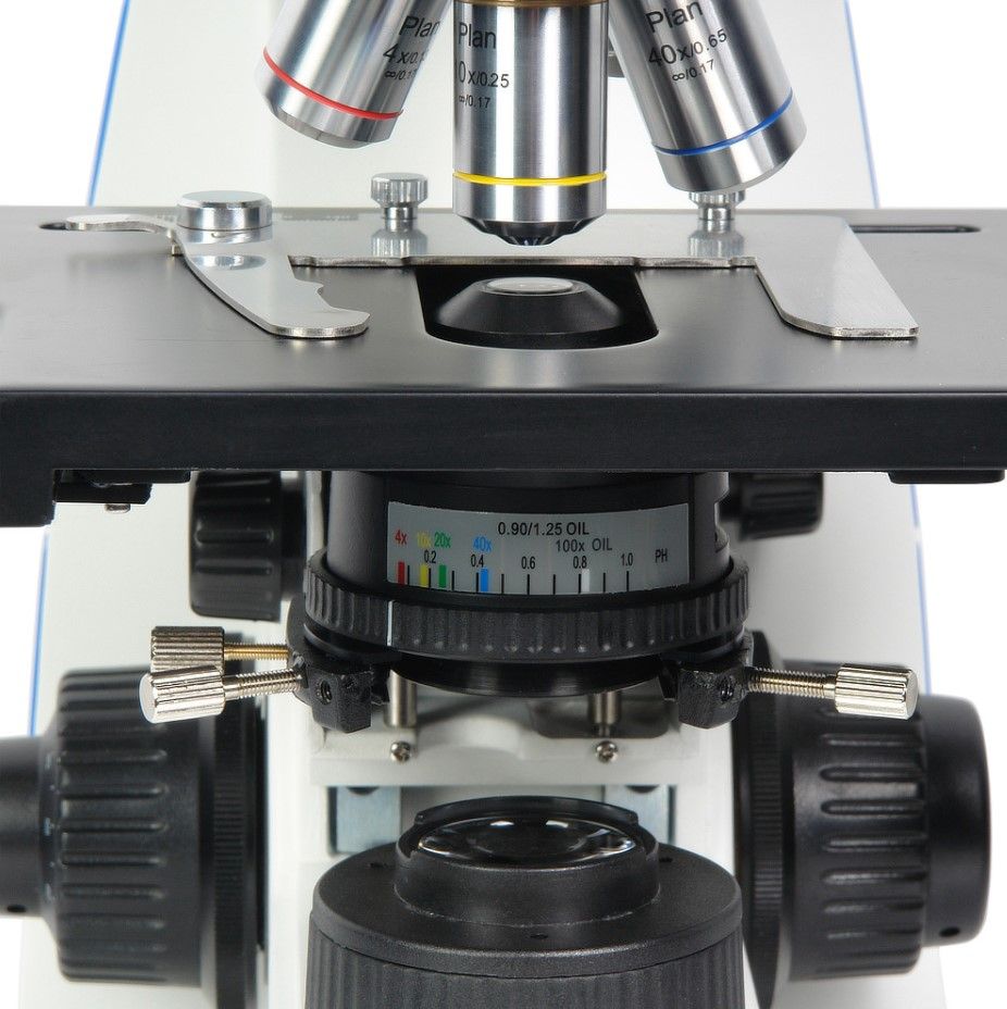 - 2 подпружиненных объектива-планахромата: 40х/0.65 беск. 0.17, 100 (ми)х/1.25 беск. 0.17,