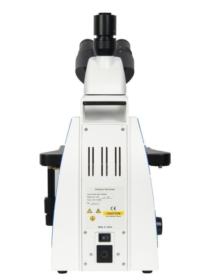 Микроскоп рассчитан на объективы DIN c парфокальной высотой 45 мм. Длина тубуса "бесконечность". Столик изменяет высоту в пределах 8 мм. Диапазон перемещения препарата составляет 75х50 мм. Светофильтры устанавливаются на коллектор.