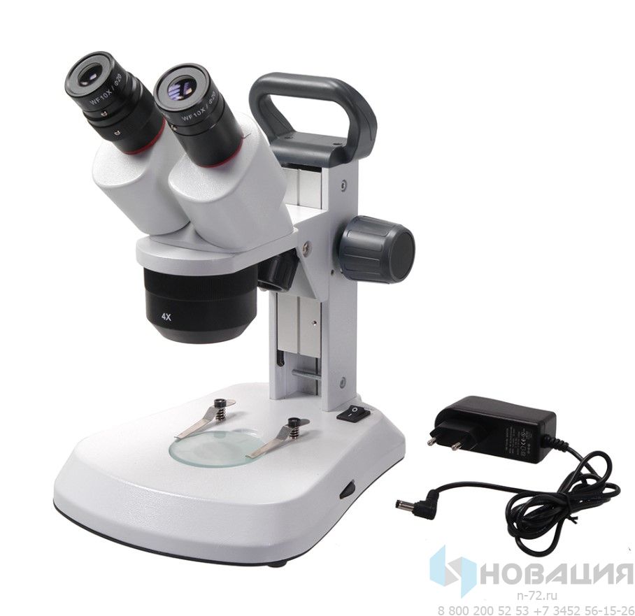 Рабочее расстояние составляет 57 мм. D предметного столика 60 мм. Револьверное устройство для 3-х пар объективов поворачивается на 120 градусов. Источником питания служат аккумуляторы или сеть переменного тока 220 В.
