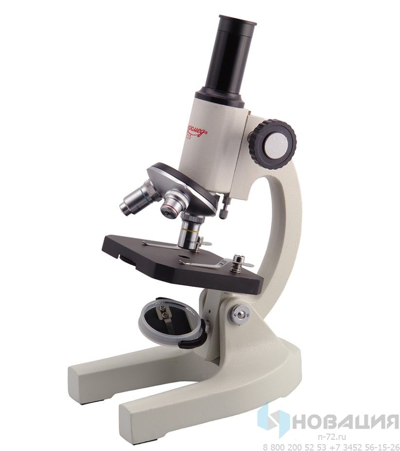 - штатив с окулярным тубусом, револьвером на 3 гнезда,