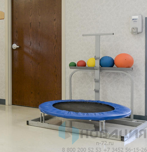 Стационарный батут на стальной раме (к которой крепится подставка для медицинболов) — удобный тренажер для метания в цель, изготовленный из высококачественного материала. Используется в лечебной медицине при восстановлении после травм, подходит для детей и взрослых с ОВЗ.