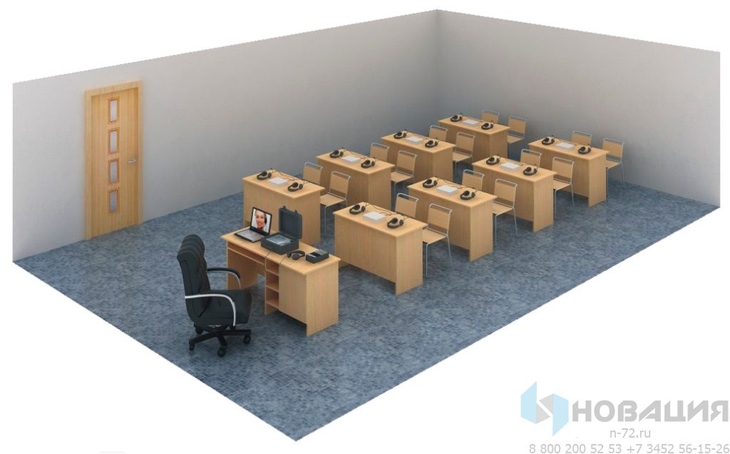 Преподаватель транслирует обучающие программы с любых источников. Ученики отвечают на контрольные вопросы, прослушивают фонограммы, ведут диалог.