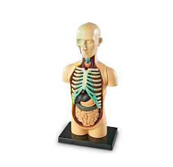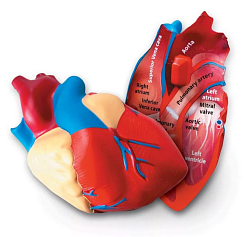 На модели изображен человек и показаны основные кровеносные сосуды во всем организме. Сосуды с венозной кровью обозначены синим цветом, с артериальной - красным. Наглядное пособие позволяет изучить расположение основных кровеносных сосудов и сердца, выделить два круга кровообращения.