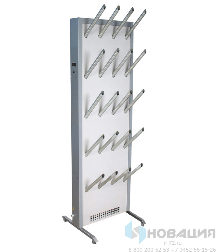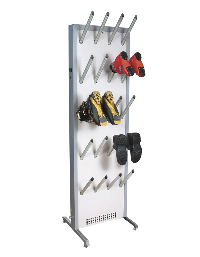 Представляет собой металлический корпус со съемными патрубками, на которых размещается обувь. В нижней части корпуса установлен блок нагрева, нагнетающий теплый воздух внутрь корпуса, который затем выходит через отверстия в съемных патрубках. Состоит он из тангенциального вентилятора, одного игольчатого слюдяного нагревателя, датчика контроля температуры и электронного блока управления. Кнопочное управление осуществляется через панель, расположенную на боковой стенке корпуса.