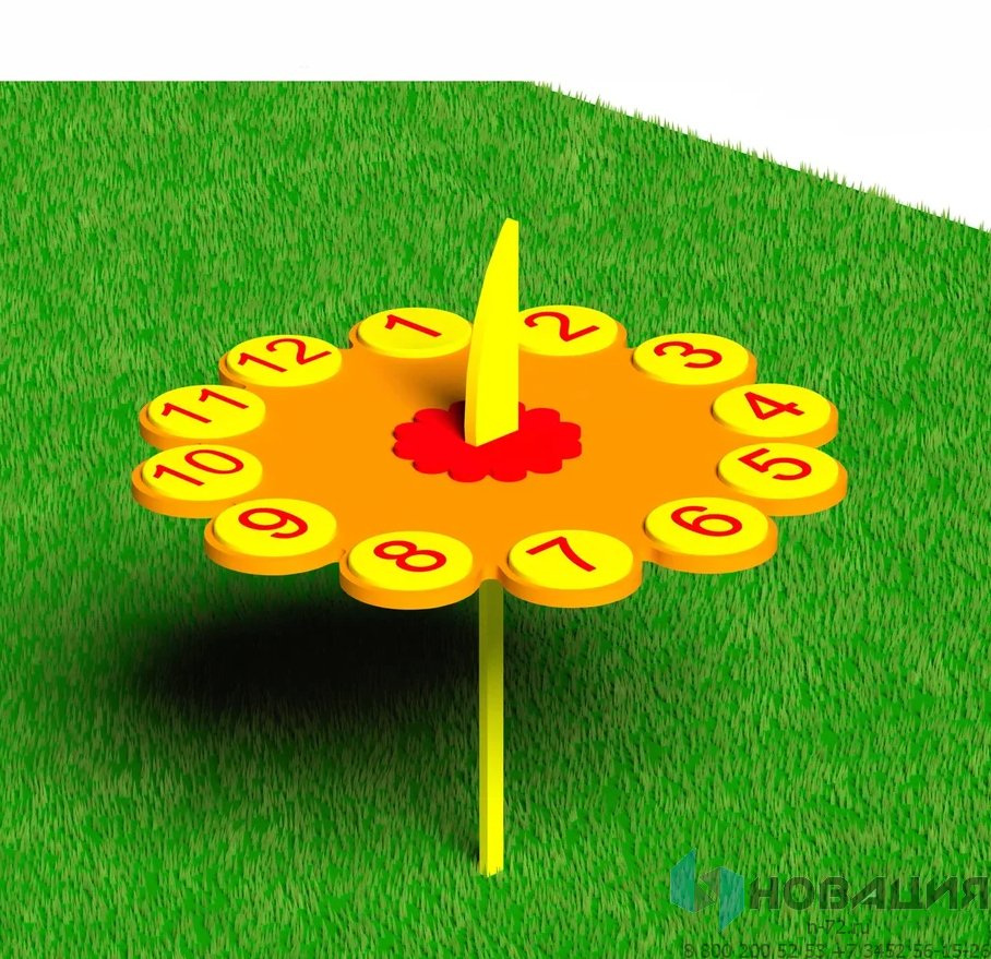 Элемент уличной метеоплощадки научит определять время по Солнцу. Циферблат с арабскими цифрами закрепляется на вертикальном стержне. Фигурная верхушка стержня отбрасывает тень на числовые обозначения.