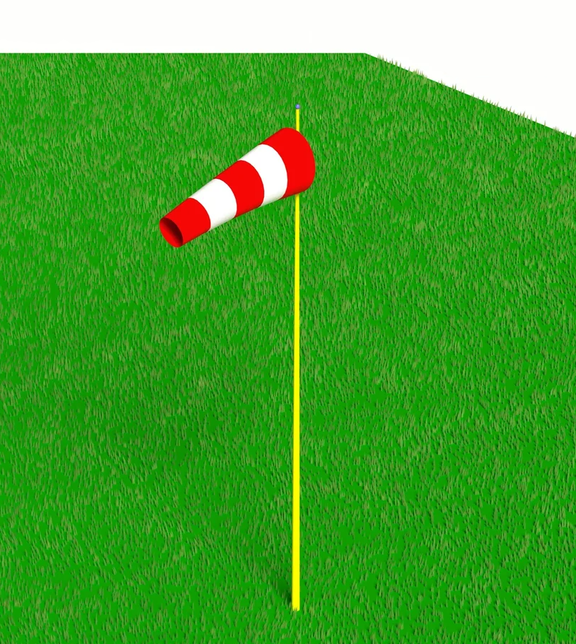 Установка для метеоплощадки позволяет определить силу и направление ветра. Рукав классической красно-белой расцветки закрепляется на металлическом столбе.