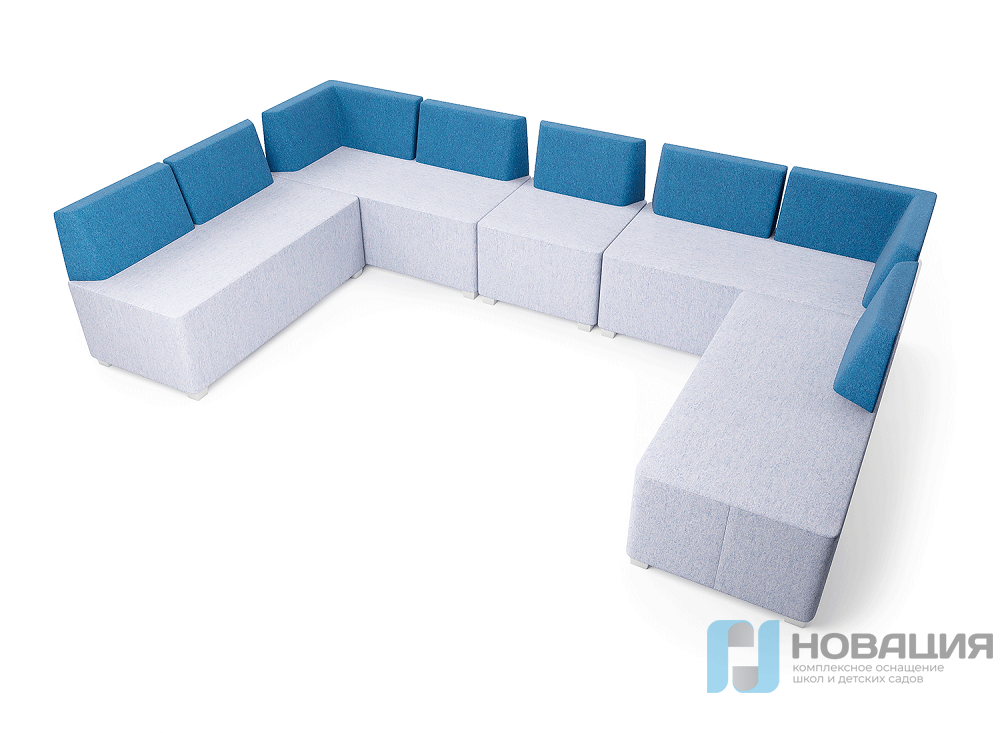Подойдет для размещения 7 человек (при комбинировании модулей возможно размещение до 9 человек). Из секций можно составить различные конфигурации модульного дивана.