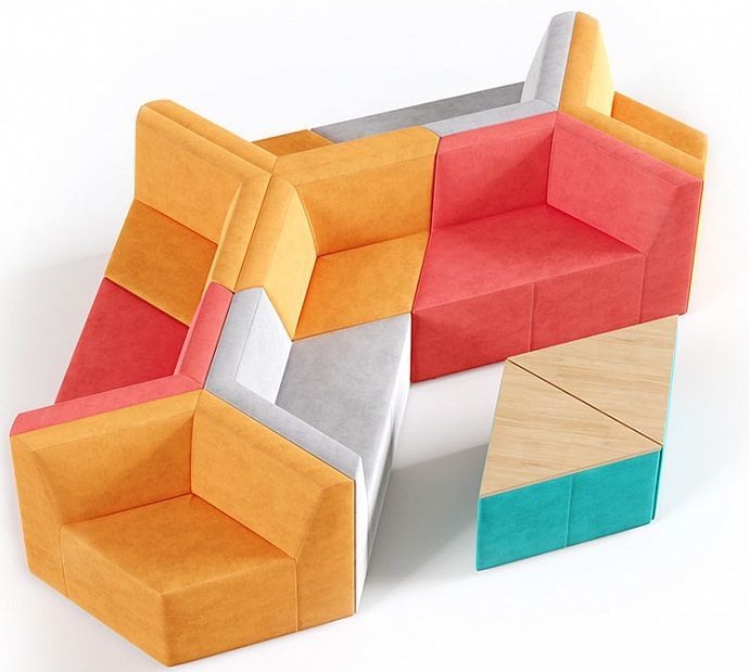 Модульный диван "Гелиос №3" подойдет для оснащения зоны отдыха и холла в школе, для оформления коворкинг пространства.
