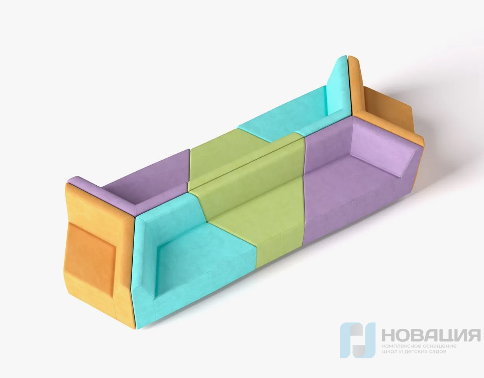 Модульный диван "Гелиос №4" подойдет для оснащения зоны отдыха и холла в школе, для оформления коворкинг пространства, в том числе для реализации общеобразовательных проектов ТР и квантум.