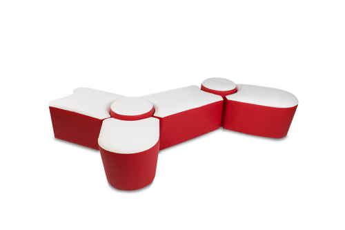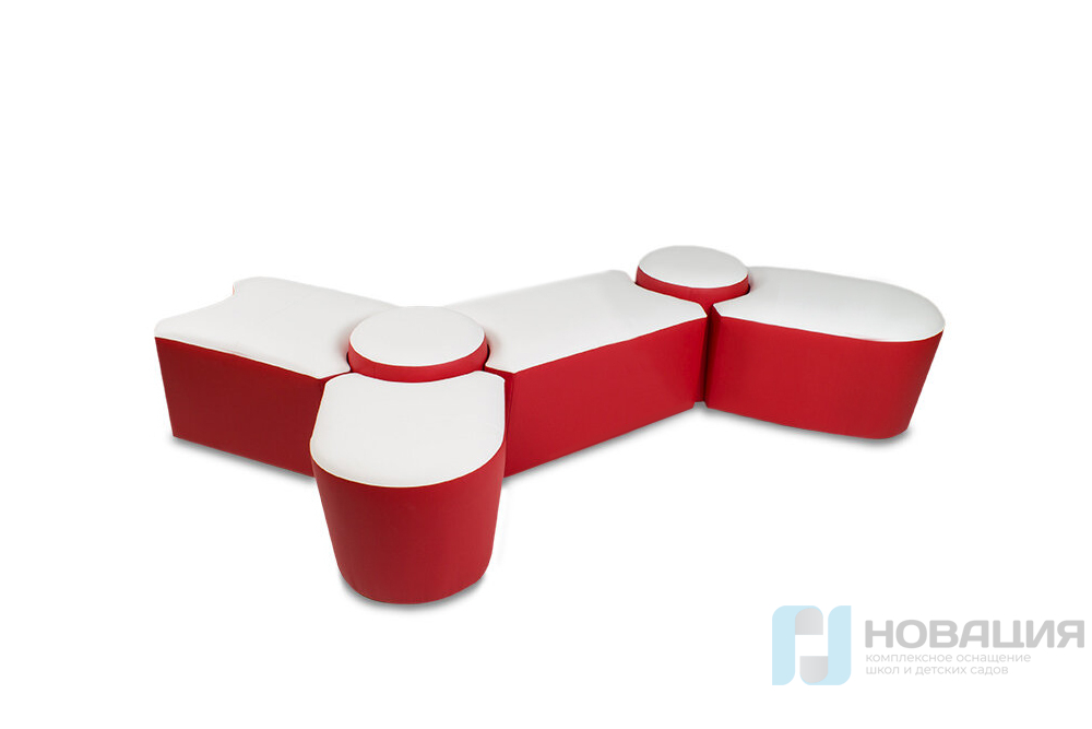 Композиция из мягких пуфов подходит для зоны отдыха в летнем школьном лагере, сенсорной комнате, раздевалки или коридора.