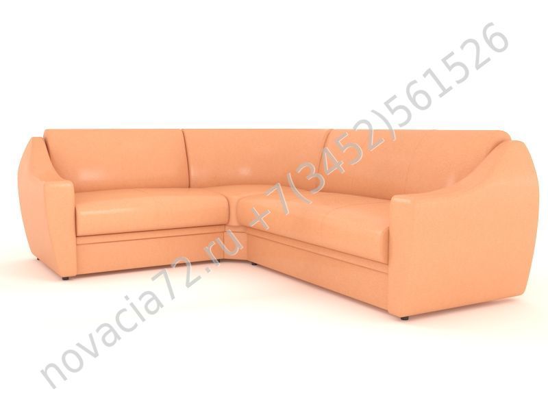 Угловой диван оснащен подлокотниками и трехсекционной спинкой. Материал обивки подходит для влажной уборки.