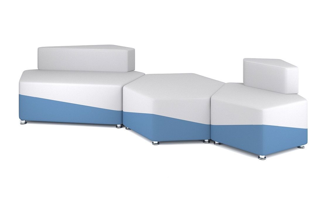 Обивка плотностью от 150 г/кв.м сохраняет форму и равномерно распределяет нагрузку. 2-цветные модули оснащаются хромированными опорами высотой 40 мм. Мебель используется в школе, подходит для зонирования. Диван сочетается с другими изделиями ToForm.