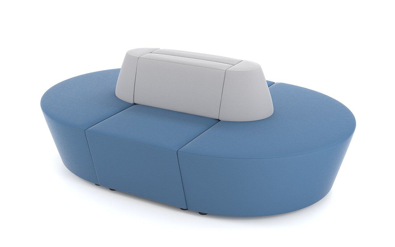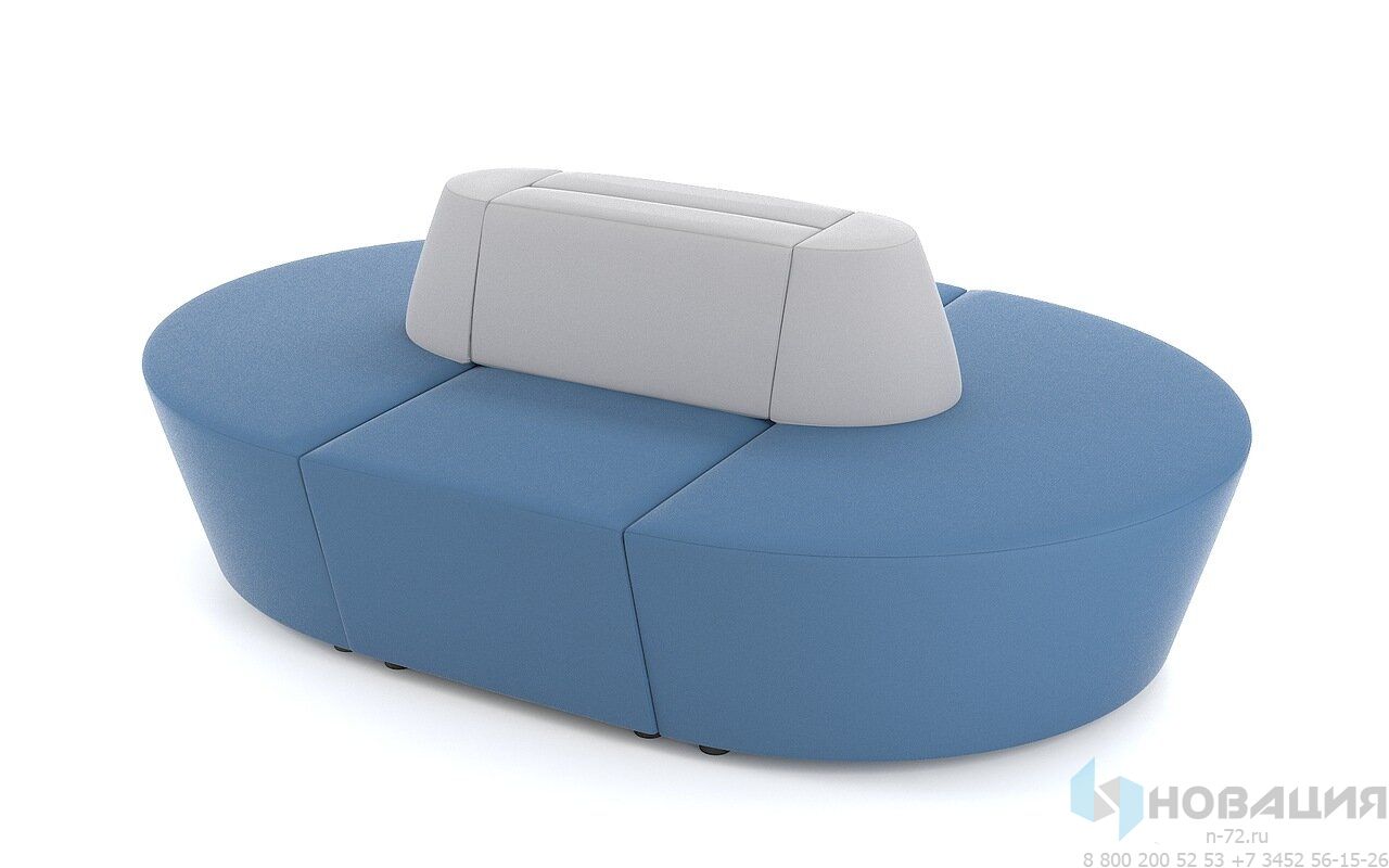 Доступ к мебели открыт с 4-х сторон. 4 элемента со спинками и сиденьями составляют конструкцию овальной формы.
