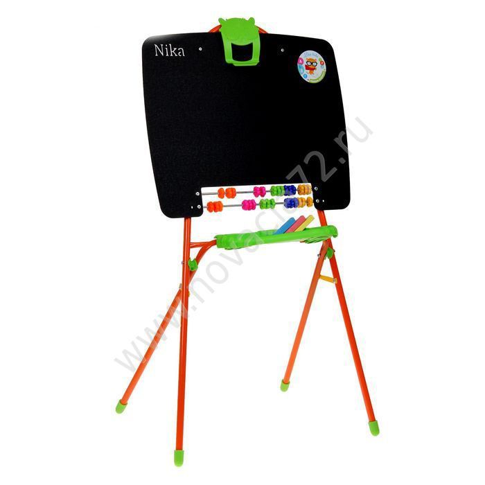 Рабочая поверхность предназначена для рисования цветными мелками, а складывать их удобно в специальный пенал. С помощью зажима в виде зверька можно закрепить листы, чтобы провести занятия или повесить прописи для тренировки навыков письма. А с яркими счётами-цветочками дети будут обучаться азам арифметики в увлекательной игровой форме. Легко и компактно складывается.