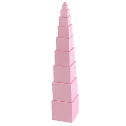 Игрушечная лестница применяется на занятиях по методу Монтессори. 10 коричневых ступеней нужно расположить по мере возрастания ширины.