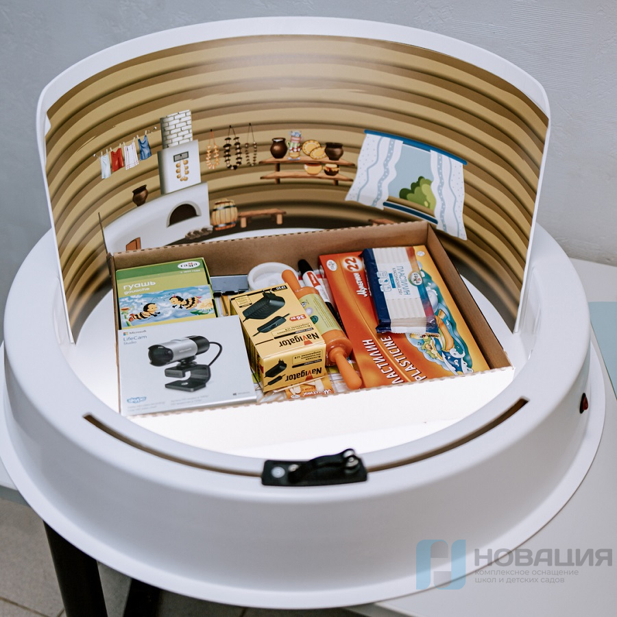 Готовое решение рассчитано на 10-15 детей. Мультстудия представлена оборудованием с LED-подсветкой, расходными материалами для разных видов анимации: песочной, кукольной, водной, теневой и пластилиновый театр, LEGO-анимация.