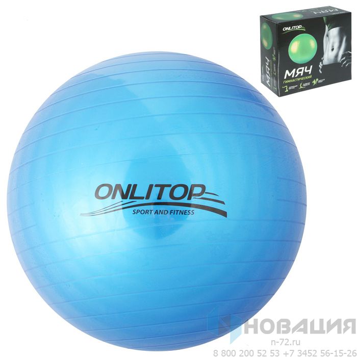 Фитбол (мяч для фитнеса) с гладкой поверхностью выдержит нагрузку до 100 кг. Инвентарь используется во время тренировок всех групп мышц и вестибулярного аппарата, подходит для роста 165-180 см.