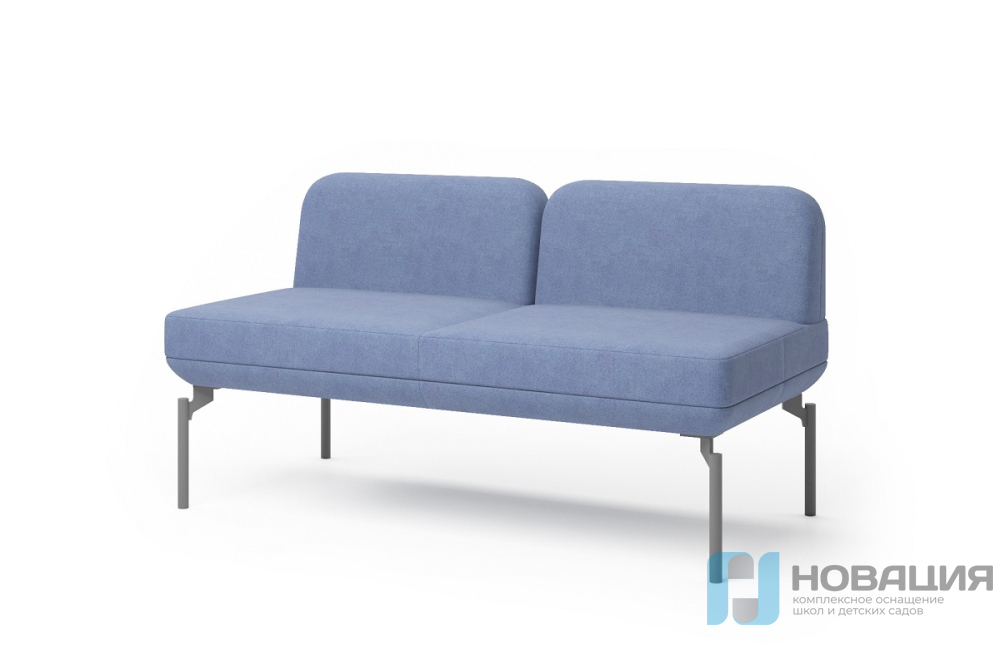 Диван рассчитан на двух человек. Мягкое сиденье и спинка размещаются на четырех металлических опорах. Высота опор оптимальна для уборки помещений.