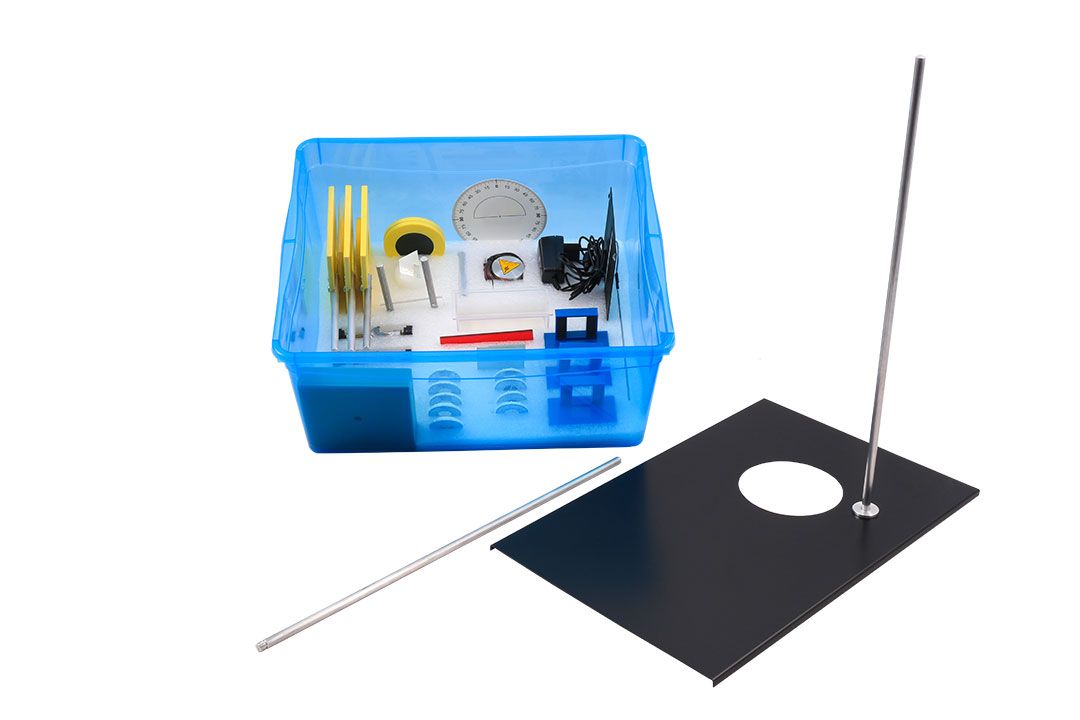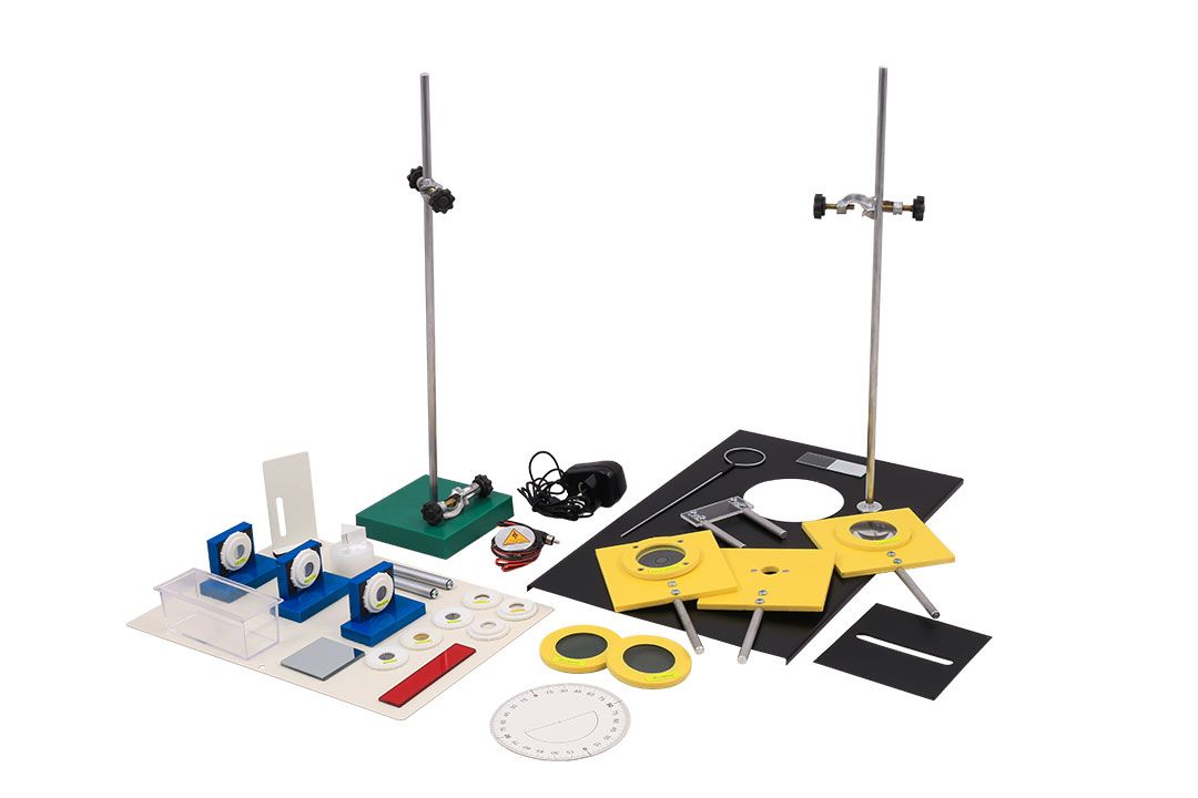 В составе набора: полупроводниковый лазер с блоком питания — 1 шт, линза собирающая — 2 шт, дифракционная решетка — 2 шт, рамка для наблюдения интерференции в мыльной пленке — 1 шт, образец из оргстекла для демонстрации напряжений — 1 шт, призма из стекла «Флинт» — 1 шт, сборка «Кольца Ньютона» — 1 шт, бипризма Френеля — 1 шт, стеклянная пластина — 1 шт, светофильтр красный — 1 набор, зеркало плоское — 1 шт, поляроиды — 2 шт, экран малый — 1 шт, кювета — 1 шт, оправа с отверстием — 1 шт, оправа со щелью — 2 шт, оправа с нитью — 1 шт, двумерная дифракционная структура — 1 шт, держатели оптических элементов — 3 шт, комплект пластиковых оправок — 2 шт, муфта — 3 шт, стойка штатива — 2 шт, основание штатива — 1 шт, рабочее поле — 1 шт, держатель рабочего поля — 2 шт, лимб — 1 шт, щелевая диафрагма — 1 шт, столик для графического проектора — 1 шт, методические указания — 1 шт, паспорт набора — 1 шт, упаковка — 1 шт.