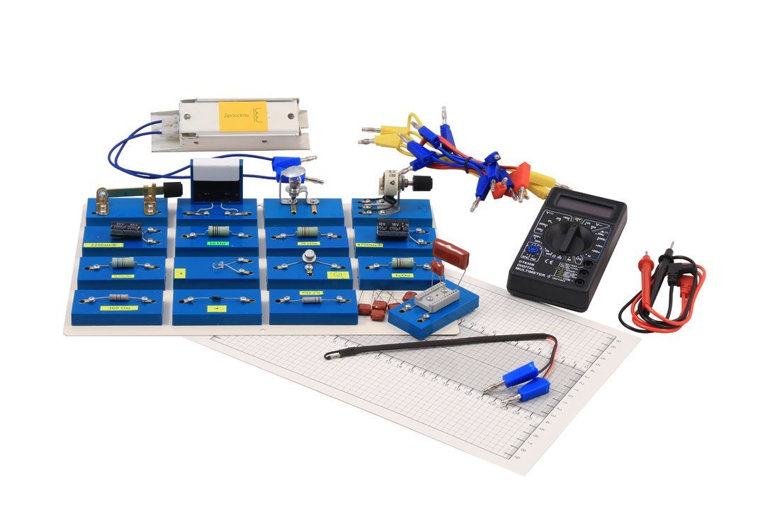 - изучение последовательного и параллельного соединения конденсаторов, явления самоиндукции, зависимости сопротивления металла и полупроводника от температуры, вольтамперной характеристики германиевого диода, работы транзистора, последовательной цепи переменного тока, резонанса в электрическом колебательном контуре, работы фотоэлектрического преобразователя, зависимости освещенности (от расстояния между источником света; от угла падения световых лучей).