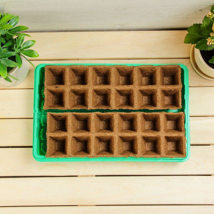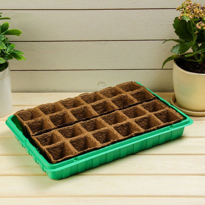 Кассета с торфяными таблетками и поддоном поможет вырастить здоровые культуры. Торфяные горшочки связаны между собой, подходят для развития рассады и черенкования.