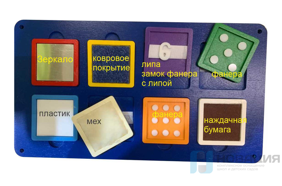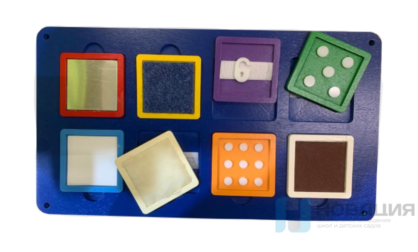 Тренажер для развития чувствительности применяется в детском саду. Набор включает в себя гладкие и шероховатые, пушистые и грубые материалы, при помощи которых определяется уровень развития тактильных ощущений у дошкольников. Изделие подходит для детей с аутизмом, психологическими проблемами.